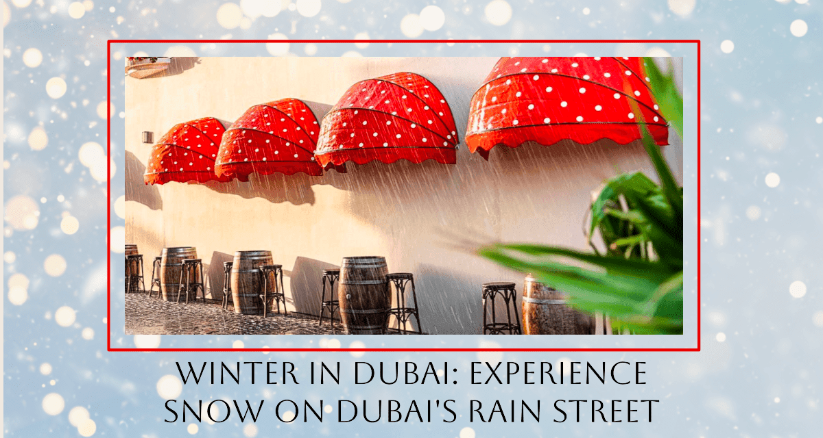 Dubai’s Rain Street, known for its charming red-with-white-polka-dot awning, will be temporarily converted into a snow-covered street, creating a captivating winter wonderland in the UAE. The transformation will allow visitors to immerse themselves in the magic of a snowy landscape, complete with snowfall. The 1-kilometre-long street is climate-controlled, ensuring that guests can enjoy a comfortable environment while surrounded by the beauty of snow.